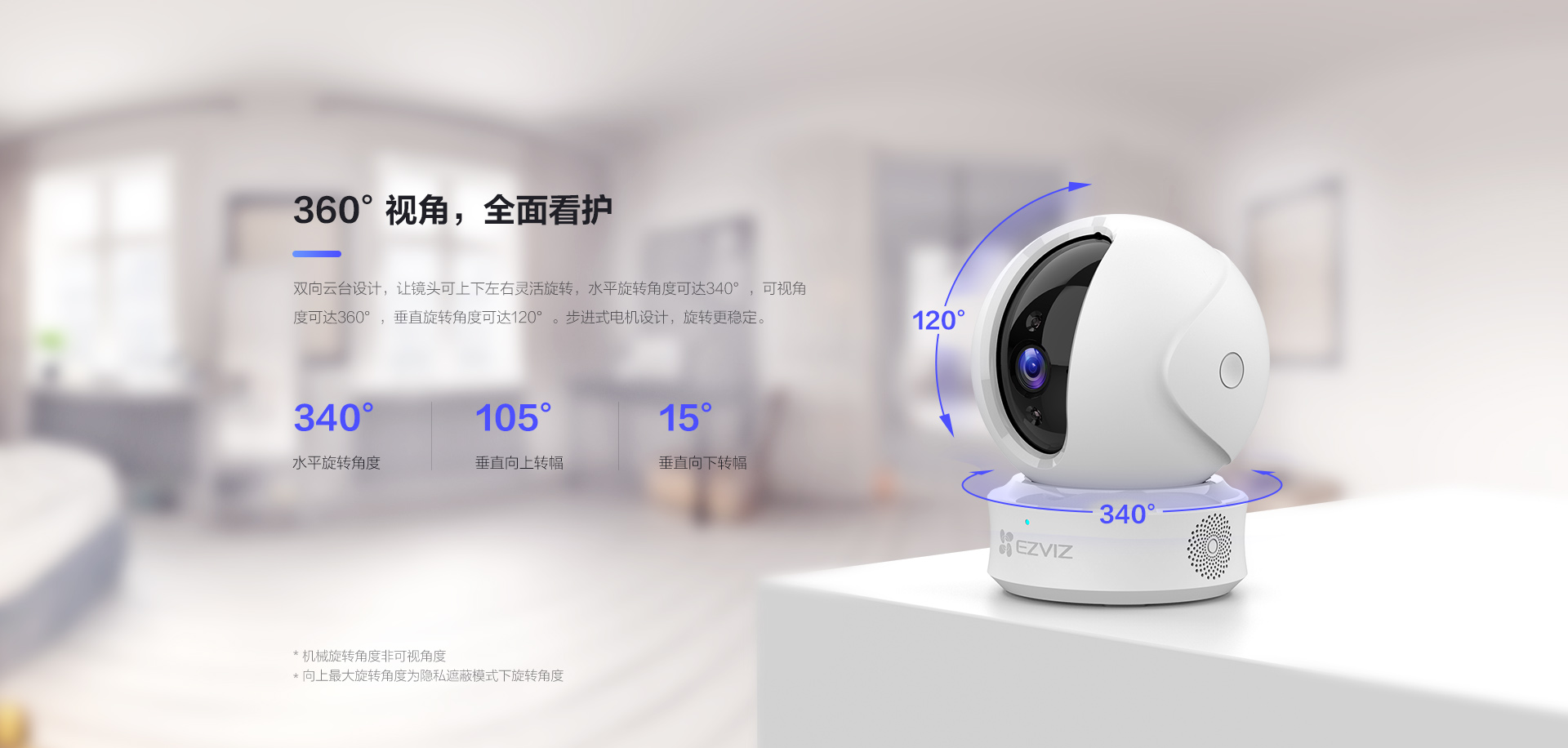 海康螢石C6TC家用云臺監(jiān)控攝像頭帶移動偵測電話提醒