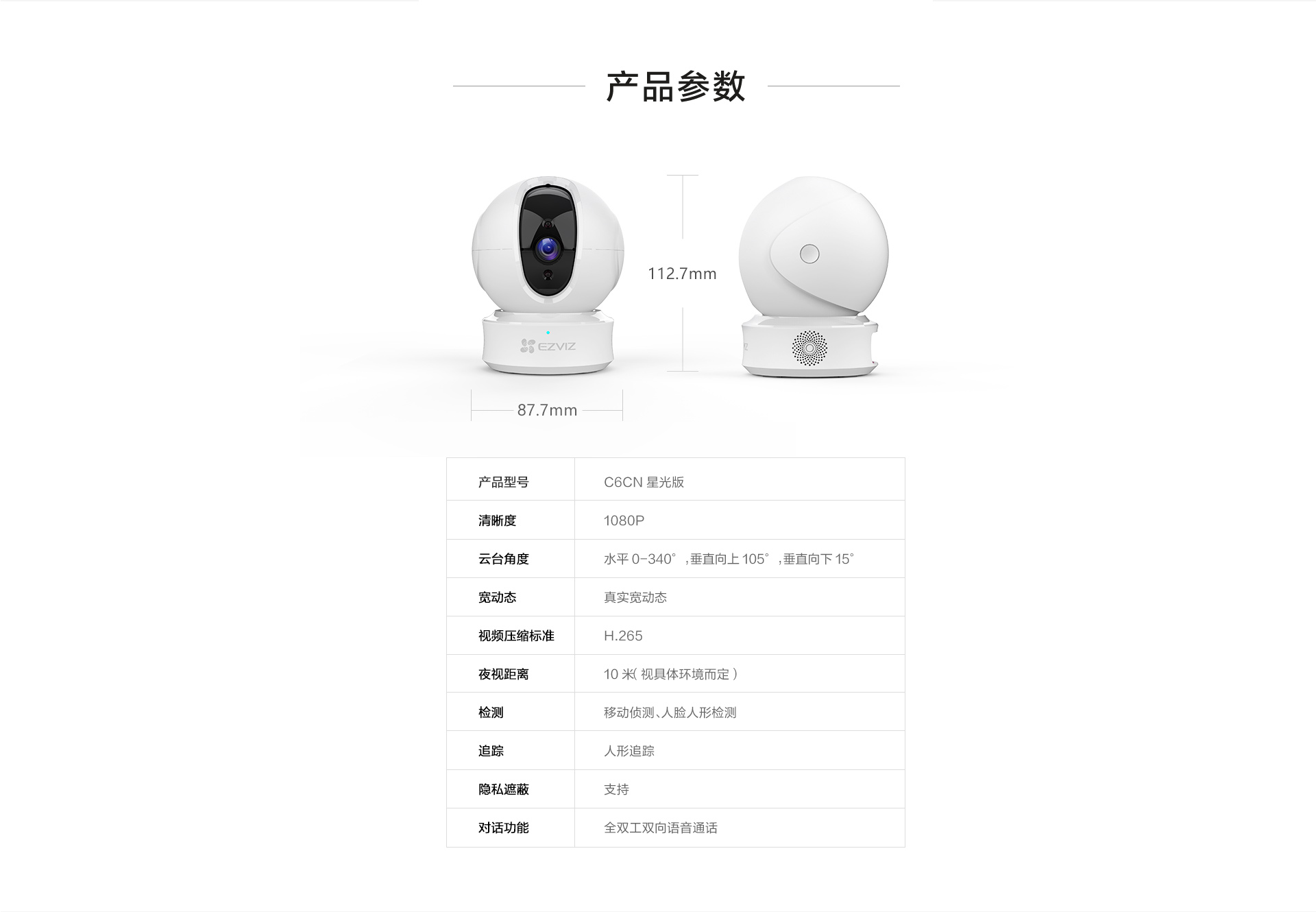 海康螢石C6CN星光級紅外夜視網(wǎng)絡(luò)攝像頭,可360度全方位監(jiān)控、雙LED紅外燈10米夜視距離、人臉人形偵測追蹤、一鍵鏡頭遮蔽隱私保護(hù)。