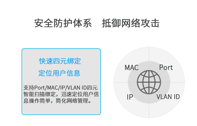 全面防護體系、節省網絡帶寬、支持語音VLAN、支持VLAN劃分、豐富的QoS策略、安全網絡管理。