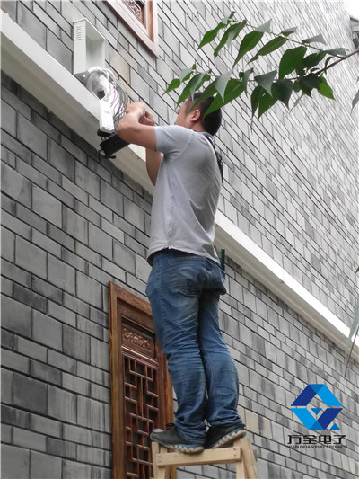 施工過程 :考慮到室內房間眾多,拐角較多,存在有一定的安全隱患,加之屋頂花園有通向室內的樓道,也須要對屋頂花園進行監控安裝起到隨時監控的作用;室內將是未來實際物品展覽區域,有極大的防盜需求,綜合實際防盜需求和房屋結構情況,成都萬全電子選擇了室內外同步安裝聯網防盜系統以及視頻監控系統的方案,并于安裝當天全部完工經雙方驗收合格后正式交付客戶使用